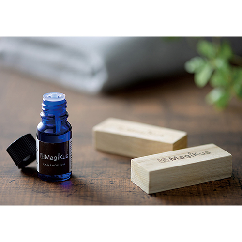 樟脳(しょうのう)材を抽出する原木である、くすのきから抽出した100%天然オイル。強力な防虫効果を発揮する、安心安全な防虫剤です。 香りが薄くなったら、ブロックにオイルを数滴垂らすだけで、繰り返し使えるエコな仕様。天然のさわやかな香りは、虫除け効果だけでなく、リラックス効果もあり、空間を心地よく整えてくれます。 クローゼットやタンスなどに置くだけで、虫を寄せ付けません。 強い香りが苦手な方にもおすすめな、体にも環境にもやさしい、暮らしに寄り添うアイテムです。