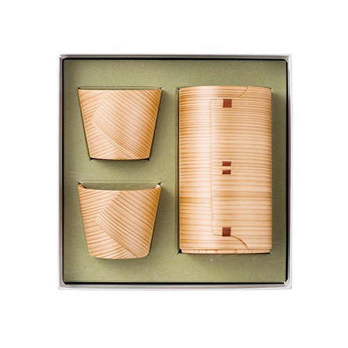 木の息吹が宿る器。秋田杉の薄板を曲げて作られる秋田の伝統工芸品「曲げわっぱ」。 秋田杉のぬくもりを感じる、曲げわっぱのぐいのみと徳久利のセットです。 内側は白木仕上げで、杉の香りがふわりと立ち、まろやかなお酒に。 木の断熱性で保冷・保温性に優れ、結露しにくいのも嬉しいポイント。 水分をはじくウレタン塗装で、使ったあとの手間も少なく済みます。