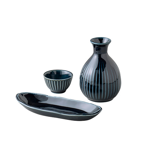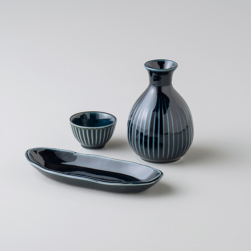 “おうち呑み”の時間を愉しむために生まれた酒器の一揃え。 徳利、お猪口、そして酒肴を添えるのにぴったりな長皿がセットになりました。 どれも手に馴染むサイズ感で、日常使いはもちろん、夜空を映したような深い藍色が印象的な磁器の酒器は特別な夜にもおすすめ。 ころんと丸みを帯びた徳利を傾けて、お猪口に酒を注ぐときの「トクトクトク…」という心地よい音が、五感をくすぐり、日本酒の味わいをより一層深めてくれる、粋な酒器セットです。