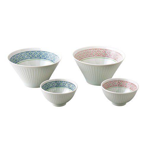 サラダ鉢(約高さ10×径19cm、容量約1.24L)×2、茶碗(約高さ6.5×径12cm、容量約330ml)×2