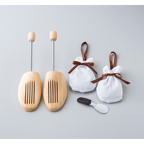 シューキーパー(全長約30.5cm)×2、竹炭入りシューキーパー(約タテ15.5×ヨコ8cm)×2、靴ベラ(約全長11.9×幅3.7cm)×1