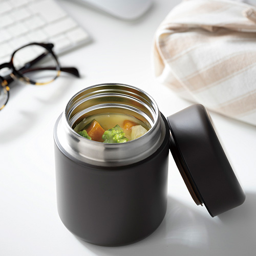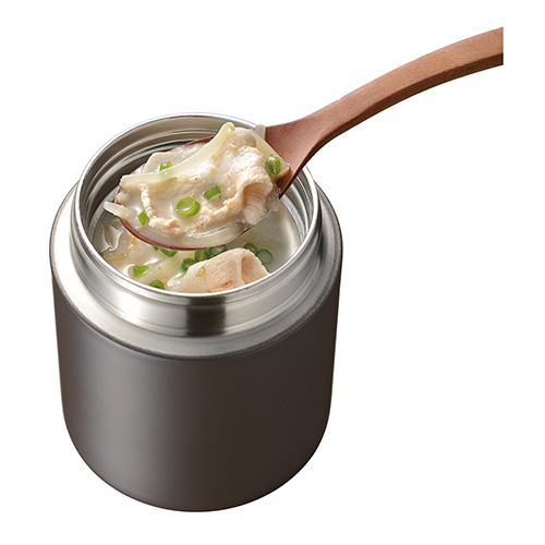 「キホンノ スープジャー」は、保温・保冷どちらにも対応した便利なランチアイテムです。 ステンレス真空断熱構造により、美味しい温度をしっかりキープ。お昼になっても温かいスープや味噌汁を楽しめるのはもちろん、冷たいフルーツやデザートを入れるのにもぴったりです。 約400mlの使いやすい容量で、普段のお弁当にプラスするのにちょうど良いサイズ感。丸みを帯びたシンプルなデザインは持ちやすく、見た目もやさしい印象です。 さらにパッキンがひとつだけのシンプル構造で、お手入れもラクラク。広口なので食品を入れやすく、洗いやすいのも嬉しいポイント。 毎日のランチタイムをより豊かにしてくれるスープジャーです。