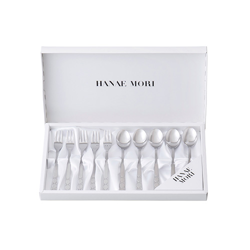 世界的ファッションブランド「ハナエモリ」の洗練された感性が光る、上品なカトラリーセットです。 繊細なフォルムが、いつもの食卓にそっと華やぎを添えてくれます。 午後のティータイムにぴったりなコーヒースプーンとヒメフォークが、それぞれ5本ずつ入った10ピースのセット。 家族や友人とのひとときが、より心地よく、豊かなものに。 実用性と美しさを兼ね備え、日々の暮らしにちょっとした特別感をもたらしてくれるアイテムです。