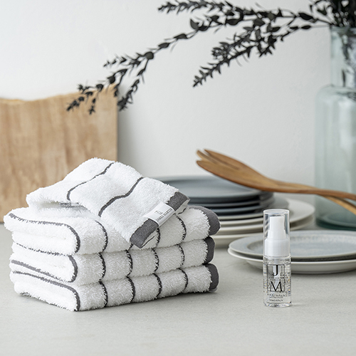 外出先や旅行先でも安心してお使いいただける、ジェームズ マーティンの携帯用除菌・消臭スプレーと、泉州産のやわらかなフェイスタオルを2枚セットにしました。 ジェームズ マーティンは、衛生管理が欠かせない飲食店の現場から生まれた日本のライフスタイルブランド。プロの現場で培われたノウハウをもとに、自社グループの店舗で働くスタッフやお客様の安心を守るために開発された除菌・消臭スプレーは、ご家庭でも頼れる存在です。 細やかな気づきにこだわり抜いた品質で、毎日の暮らしに安心を届けます。