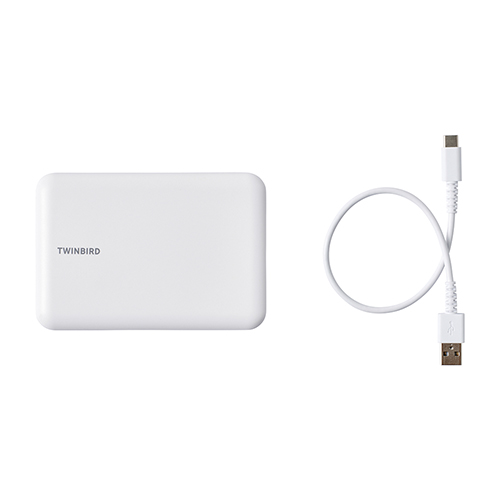 ※付属品:USB充電ケーブル(USB Type-C/USB-A)(コード約0.3m)×1。 ※入力:USB Type-C、出力:USB-A。充電時間:約3時間。 ※画像はイメージです。こちらの商品はツインバード モバイルバッテリー 5000mAhとなります。 ※商品画像は、光の当たり具合やパソコン・スマートフォンなどの閲覧環境により、実際の色味と多少異なる場合があります。 ※在庫確認の上、正式ご注文を承ります。