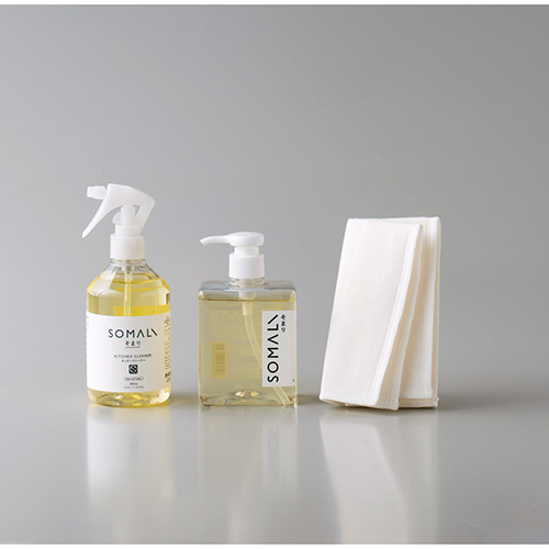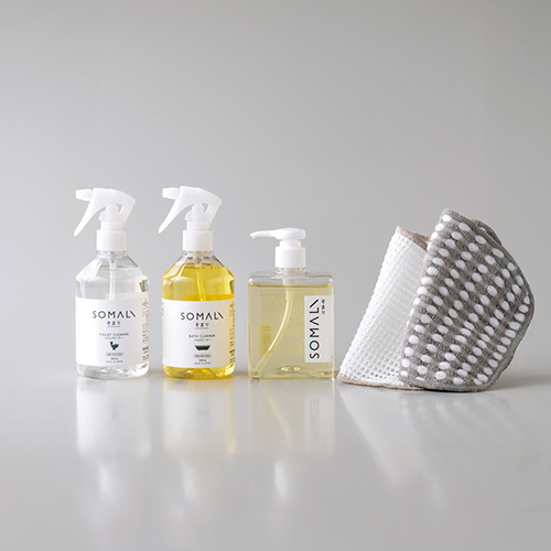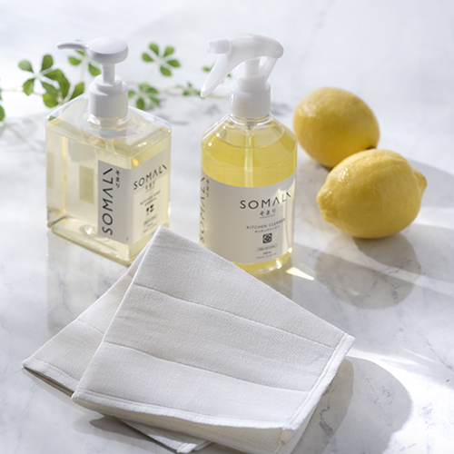 石けんの力を最大限に活かした、SOMALI(そまり)の水回り用クリーナーセットです。 大正13年創業のSOMALIは、ヤシ油と天然ミネラル由来成分を釜焚き製法でじっくり練り上げる、石けんベースのハウスケアブランド。 安全性が高く、頑固な油汚れもすっきり落とす天然オレンジ配合のキッチンクリーナー、手肌にやさしく泡立ち豊かな台所用石けん、奈良の蚊帳生地を使った天然素材のかやおりふきんをセットにしました。