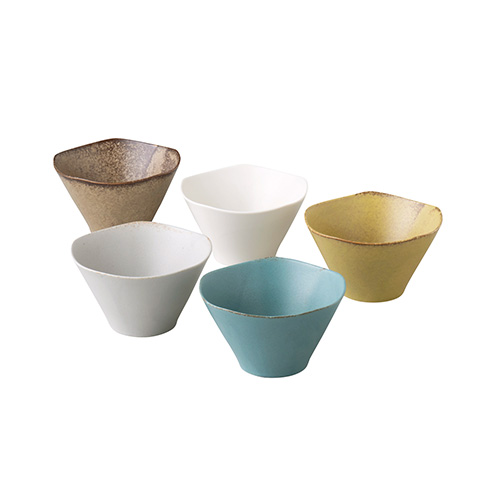 シンプルなくすみカラーと波型のデザインが特徴的なボウル5個セット。深みのあるサイズで、ごはんやサラダ、汁物など幅広い料理に使いやすく、和洋問わずテーブルに馴染みます。 5個それぞれ異なるカラーがそろっているので、食卓を彩り豊かに演出。磁器製で丈夫かつ扱いやすく、波型の形状が料理を引き立て、シンプルながらも個性を感じられるボウルセットです。
