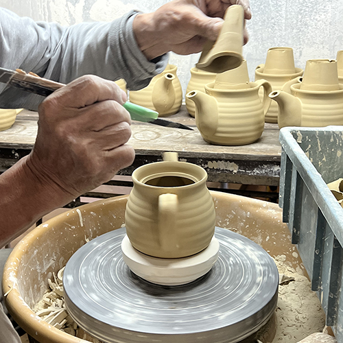 手描きの美しいぶどう柄が目を引く、有田焼のティーポット。 色の濃淡や絵柄の表情がひとつひとつ異なり、上品なたたずまいが、食卓やティータイムに彩りを添えてくれます。 紅茶やハーブティーはもちろん、緑茶にもぴったりの一品です。 安定感のあるどっしりとしたつくりで、容量は約500mlとたっぷり。来客時やゆったりとしたひとときにも重宝します。握りやすい大きめの取っ手は、注ぎやすさと持ちやすさを両立。茶こし網付きで、使いやすい設計です。