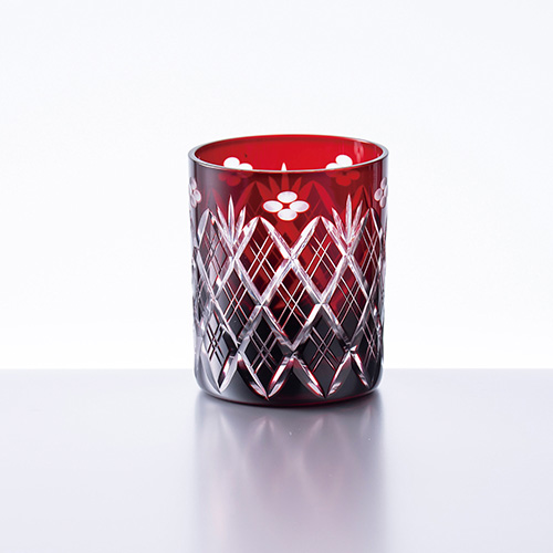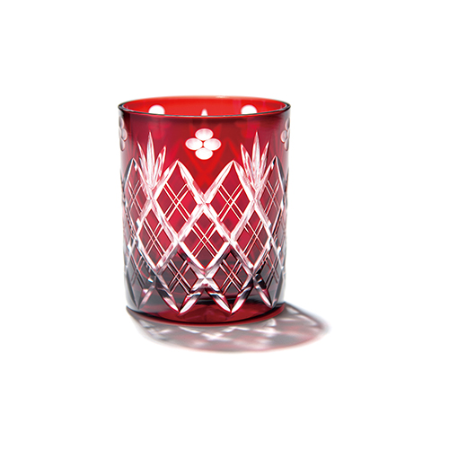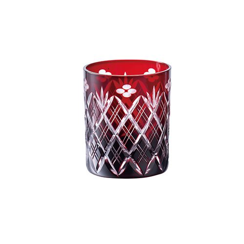 江戸切子 小花剣矢来紋 ロックグラス(赤)