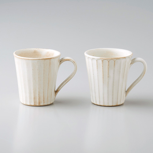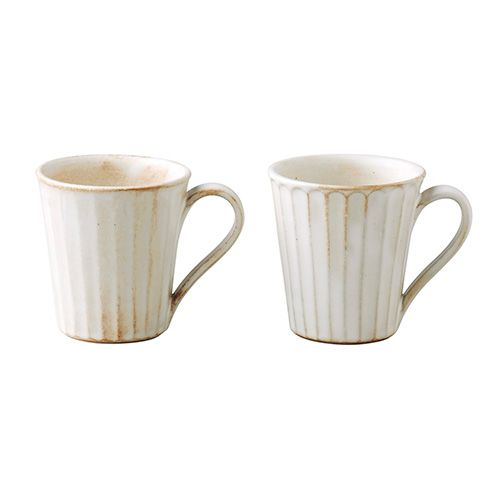 栃木県益子町で丁寧に手作りされた、Kinariシリーズのしのぎマグカップペア。 自然な色合いとやさしい雰囲気が特徴で、カップの周囲に施された縦の線刻模様「しのぎ」が、見た目の美しさだけでなく手にしっくりと馴染む心地よさを生み出します。 ひとつひとつ職人の手で作られており、同じ表情のものはなく、陶器ならではの自然な風合いを楽しめます。ほっこりとした時間を自宅でのカフェタイムに添える、やさしい質感のマグカップです。