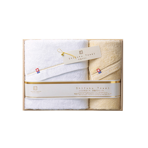 触れた瞬間、品質の高さが分かる今治謹製至福タオルのバスタオルとフェイスタオルのセット。 繊維長が長く、しなやかで、光沢があるコットンを優しく撚り上げて糸にし、肌に触れるパイルがソフトになるように織り上げています。 木箱のフタにはブランドのロゴが金で箔押しされていて、高級感に溢れています。 また、金の紐で結ばれた鈴には、“幸せを呼ぶ”という縁起の良い意味があり、“たくさんの人が幸せになりますように”という想いが込められています。心をときほぐす上質な風合いが、毎日の暮らしに幸せをお届けします。