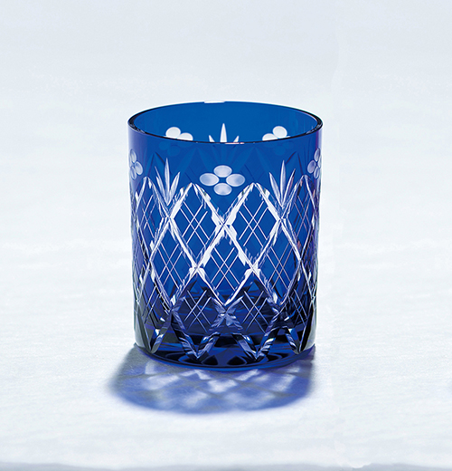 江戸切子 小花剣矢来紋 ロックグラス(琉璃)
